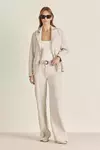 Pantalón de denim blanco tiro alto fit slim, confeccionado con tejido elastano y algodón, lo que le aporta confort y durabilidad. Detalle de strass combinadas en color pink y plata. Metales pulidos espejo white glitter exclusivos de la marca.