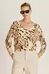 Sweater de hilado suave y fresco de viscosa, estampado con un diseño exclusivo de la temporada. Calce regular y escote pronunciado, genera un look con mucha persoanlidad que destaca.